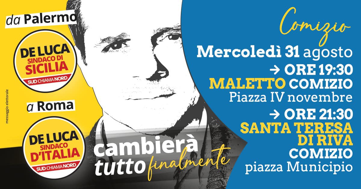 Comizio insieme al sindaco di Sicilia Cateno De Luca ore 21.30 Santa Teresa di Riva